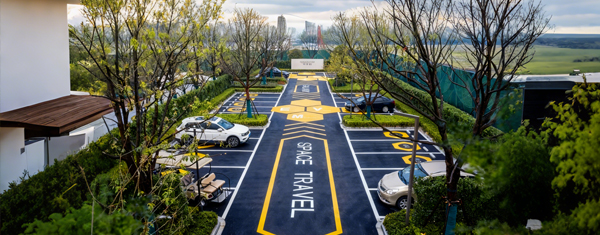 The colored parking lot features clear visibility and distinct zoning for easy parking spot location. It is slip-resistant, wear-resistant, and visually appealing, reducing scratch risks while balancing practicality and aesthetics.
